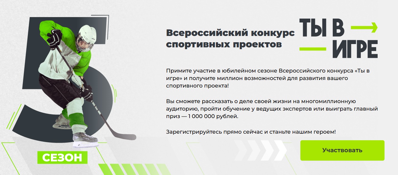 Всероссийский конкурс спортивных проектов «Ты в игре» проводит АНО «Национальные приоритеты» при поддержке Министерства спорта России.
