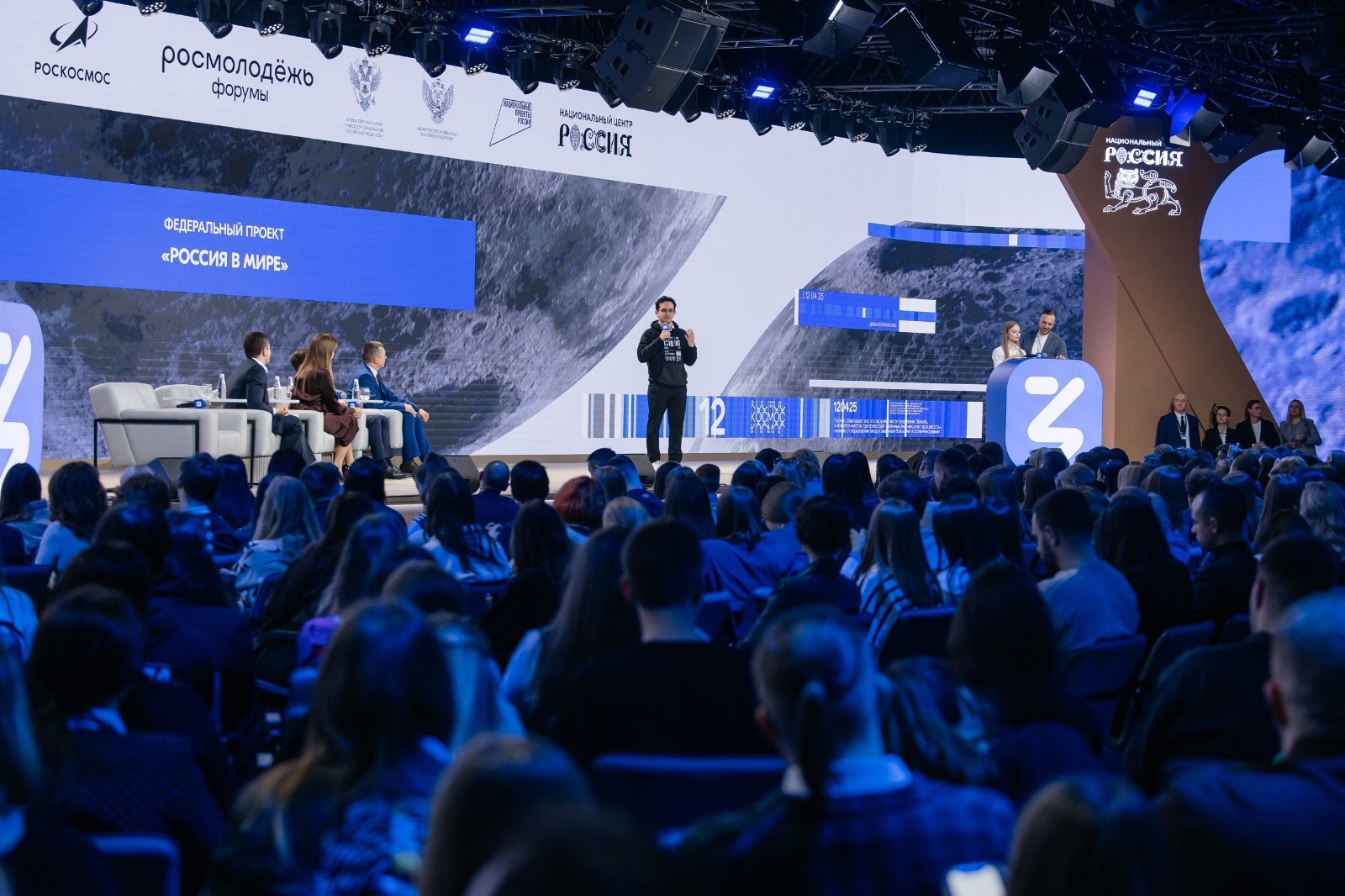 21.04.202512 апреля в Национальном центре «Россия» прошла презентация национального проекта «Молодёжь и дети», который реализуется по поручению Президента России Владимира Путина с 2025 года. Событие объединило более 1000 выпускников форумов Росмолодёжи, участников Движения Первых, молодых учёных и руководителей молодёжных объединений.На торжественной церемонии к участникам обратился Первый заместитель Руководителя Администрации Президента Российской Федерации Сергей Кириенко.«Решением Президента России зафиксировано в качестве ключевого государственного приоритета – дети и молодёжь нашей страны. Очень важно, что вы не просто благополучатели национального проекта "Молодёжь и дети", вы его соавторы. Потому что базовый принцип, который задал наш Президент при всей государственной работе с молодёжью, можно сформулировать так – ничего для детей и молодёжи без участия самих детей и молодёжи. Это ваше время, потому что Россия сегодня – действительно страна возможностей. Не случайно старт форумной кампании проходит в великий день для мира, когда впервые наш гражданин Юрий Алексеевич Гагарин полетел в космос, открыв космическую эру для человечества. И это символ того, что у каждого из вас безграничные возможности», – подчеркнул Сергей Кириенко.Также к участникам обратился заместитель Председателя Правительства Российской Федерации Дмитрий Чернышенко: «Благодаря Президенту Владимиру Владимировичу Путину вам посвящен целый национальный проект – "Молодёжь и дети", который ставит цель – создать условия, чтобы вы могли реализовать потенциал и раскрыть таланты. У вас огромное количество дорог. Вы можете приносить пользу и быть волонтерами в общероссийском проекте #МЫВМЕСТЕ, проявить себя в конкурсах "Твой ход", "Большая перемена", участвовать в программе "Больше, чем путешествие" и открывать красоты нашей необъятной страны, получить гранты на свои стартапы. Дерзайте, пробуйте, и все у вас получится», – сказал Дмитрий Чернышенко.