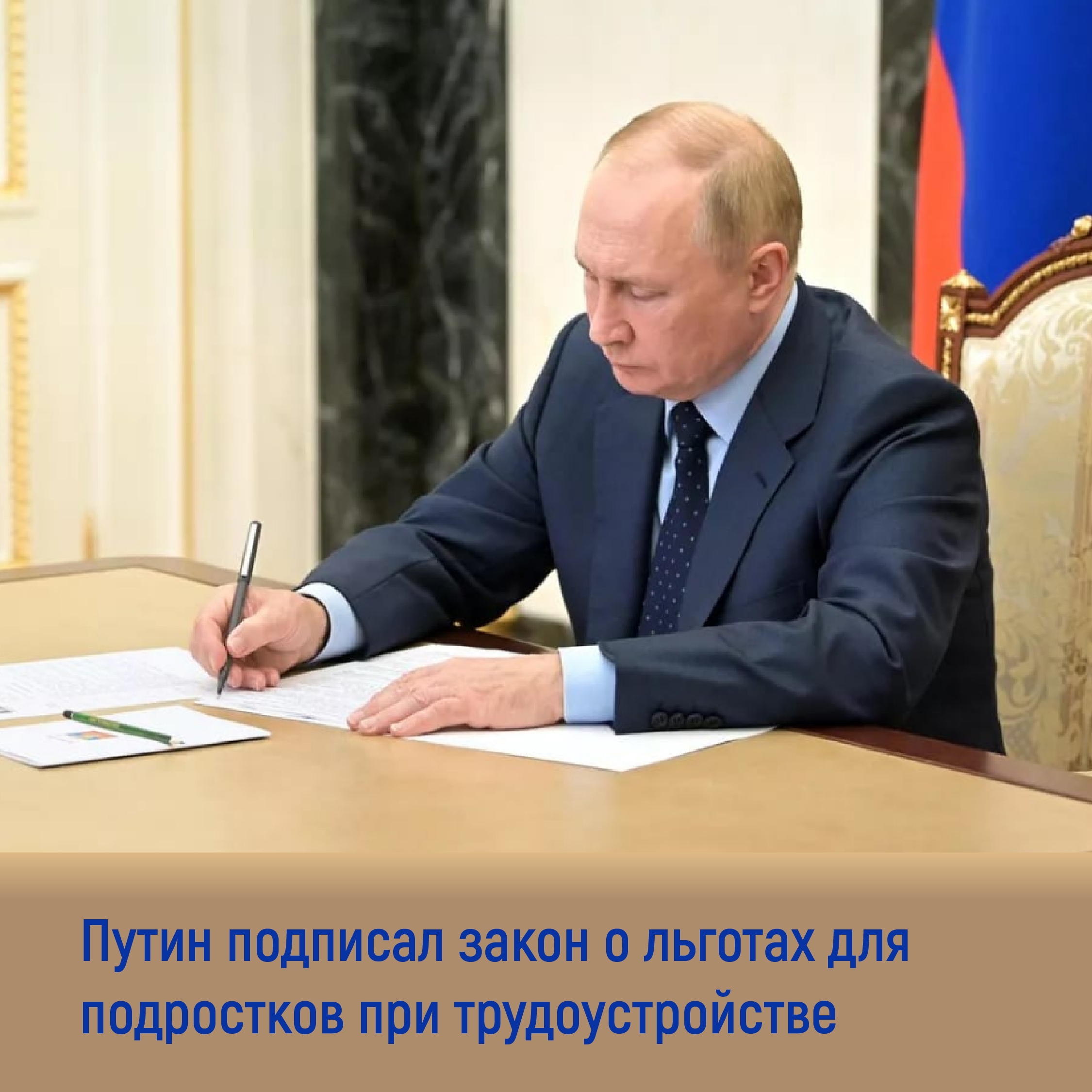 10.11.2025Президент России Владимир Путин подписал закон, позволяющий резервировать отдельные профессии и рабочие места для несовершеннолетних, нуждающихся в социальной защите. Официальный текст документа уже опубликован на портале правовой информации. Как пояснила член Комитета Совета Федерации по социальной политике Анастасия Жукова, теперь для подростков из уязвимых категорий может быть предусмотрено:— резервирование определённых видов работ или профессий,— установление квоты рабочих мест при трудоустройстве. Закон вступает в силу со дня его официального опубликования.
